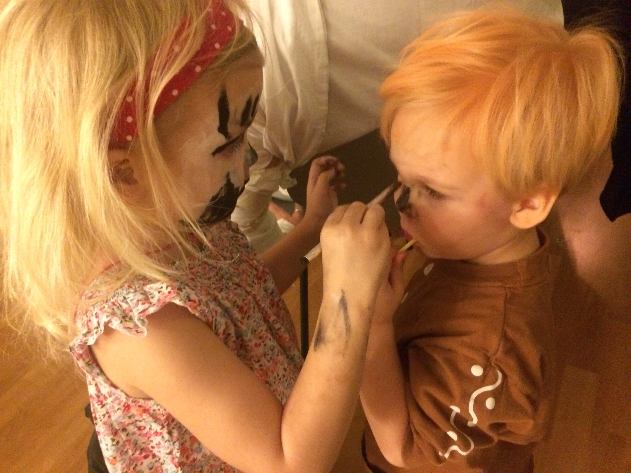 Idag har vi betett oss som zombies hela dagen, bortsett från när vi kom på att vi skulle på ett barnkalas femton minuter innan kalaset började. Då rörde vi oss faktiskt lite snabbt och hann till och med att panik-köpa presenter. Det var roligt att träffa kusiner med flera och äntligen fick Mika och Henry hänga lite med sysslingen Ofelia. Verkar för övrigt som att de flesta firar Halloween idag? Skönt att vi är ute i god tid med någonting för en gångs skull.