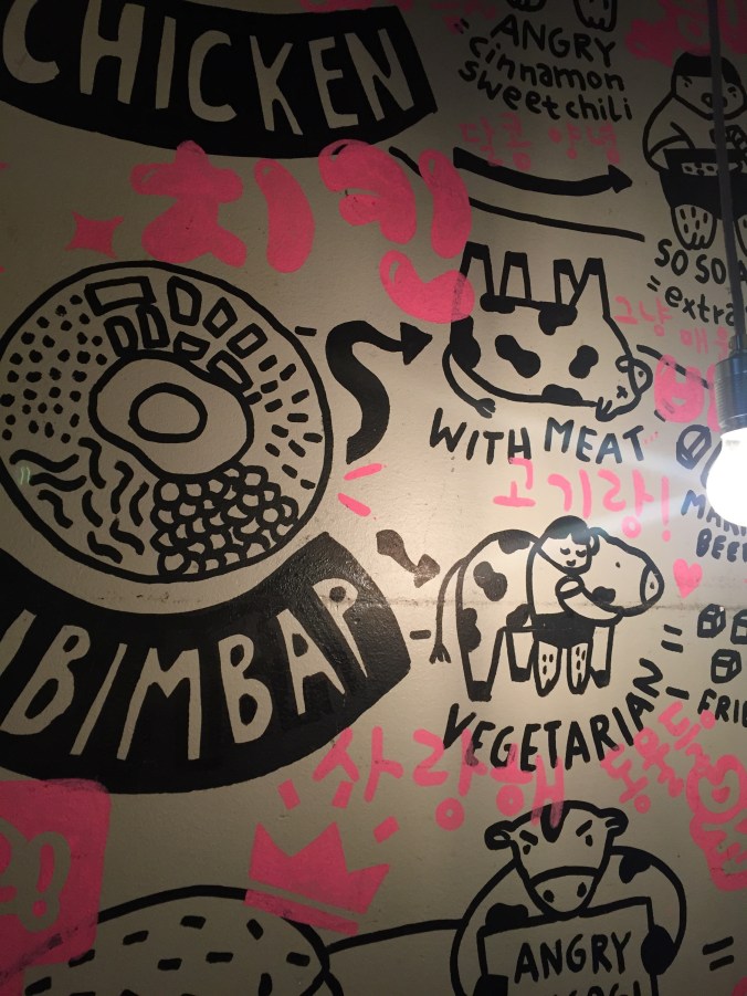 På en koreansk restaurang som hette Angry Chicken, helt inredd i aggressiva neonfärger, fick jag syn på den bästa förtydligande illustrationen ever.