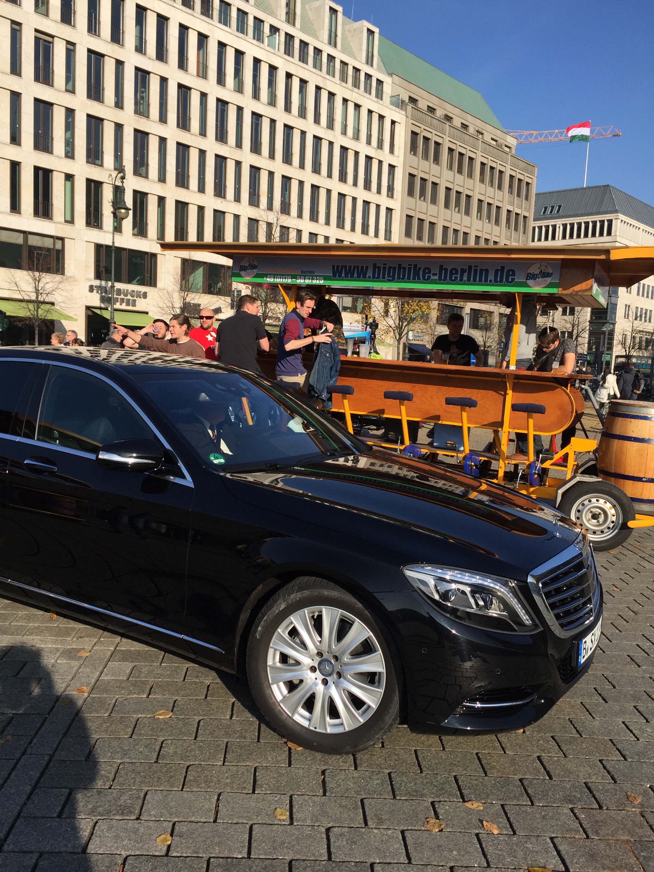 Nästa dag hittade jag det perfekta fordonet. Fri tolkning. (Men du som läser det här känner säkert mig: Om alla som dricker öl hjälps åt rör sig baren bakom den fula, svarta bilen).