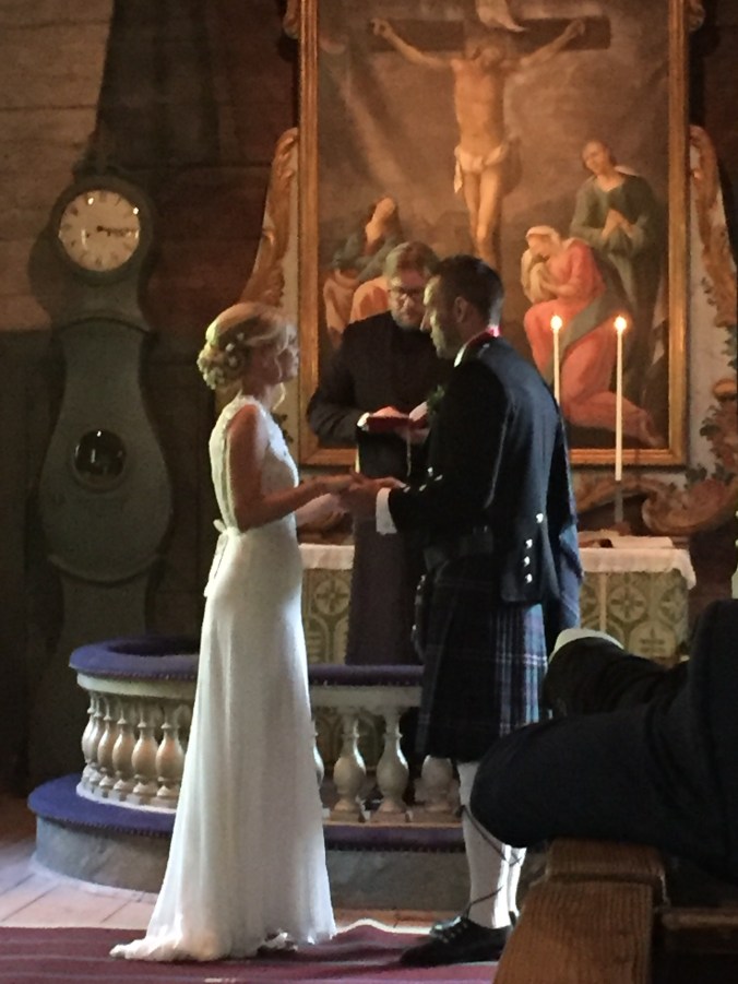 Vigselakten som bjöd på en massa skratt, överraskningar och framförallt starka känslor förrättades i Seglora kyrka på Skansen av fantastiska prästen Andreas Bernemyr, en gammal barndomsvän till Pelle. Jag och Pelle konstaterade efteråt att det nog var tur att vi inte hamnade bredvid varandra i kyrkan för då hade vi gråtit ögonen ur oss.