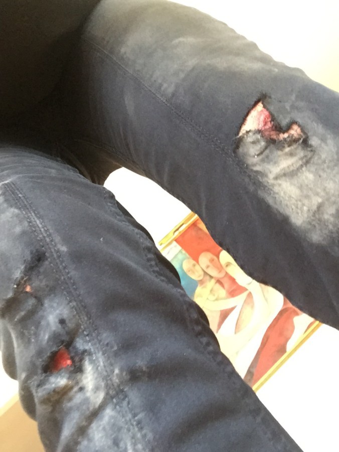 Båda mina handleder bröts rätt av i fallet och jag minns att det gjorde obeskrivligt ont. Ögonblicket efter att jag låg där och vred mig hann Daniel, som hade betalat taxichauffören, ifatt mig och frågade varför jag låg på en garageinfart och töntade mig.