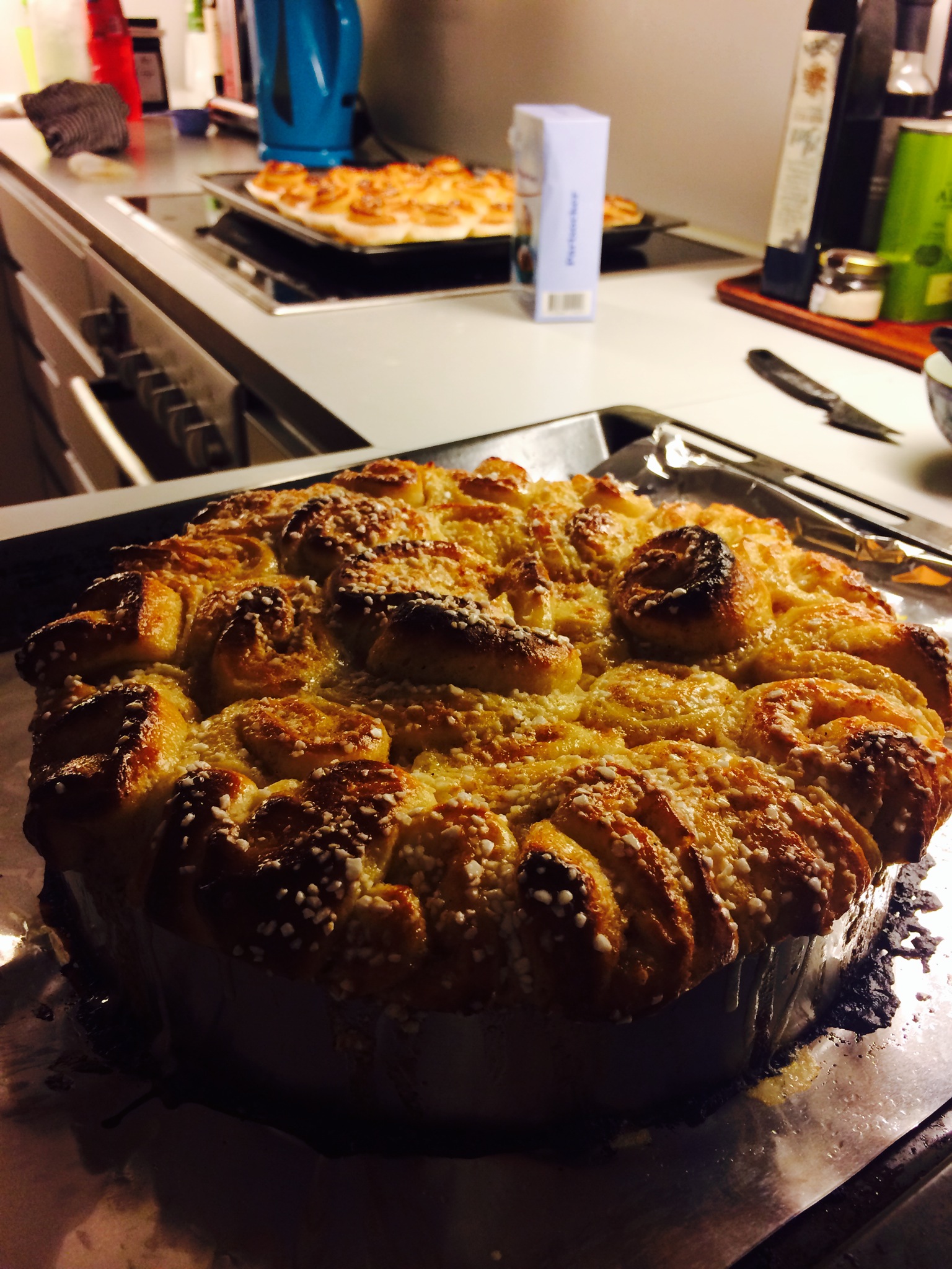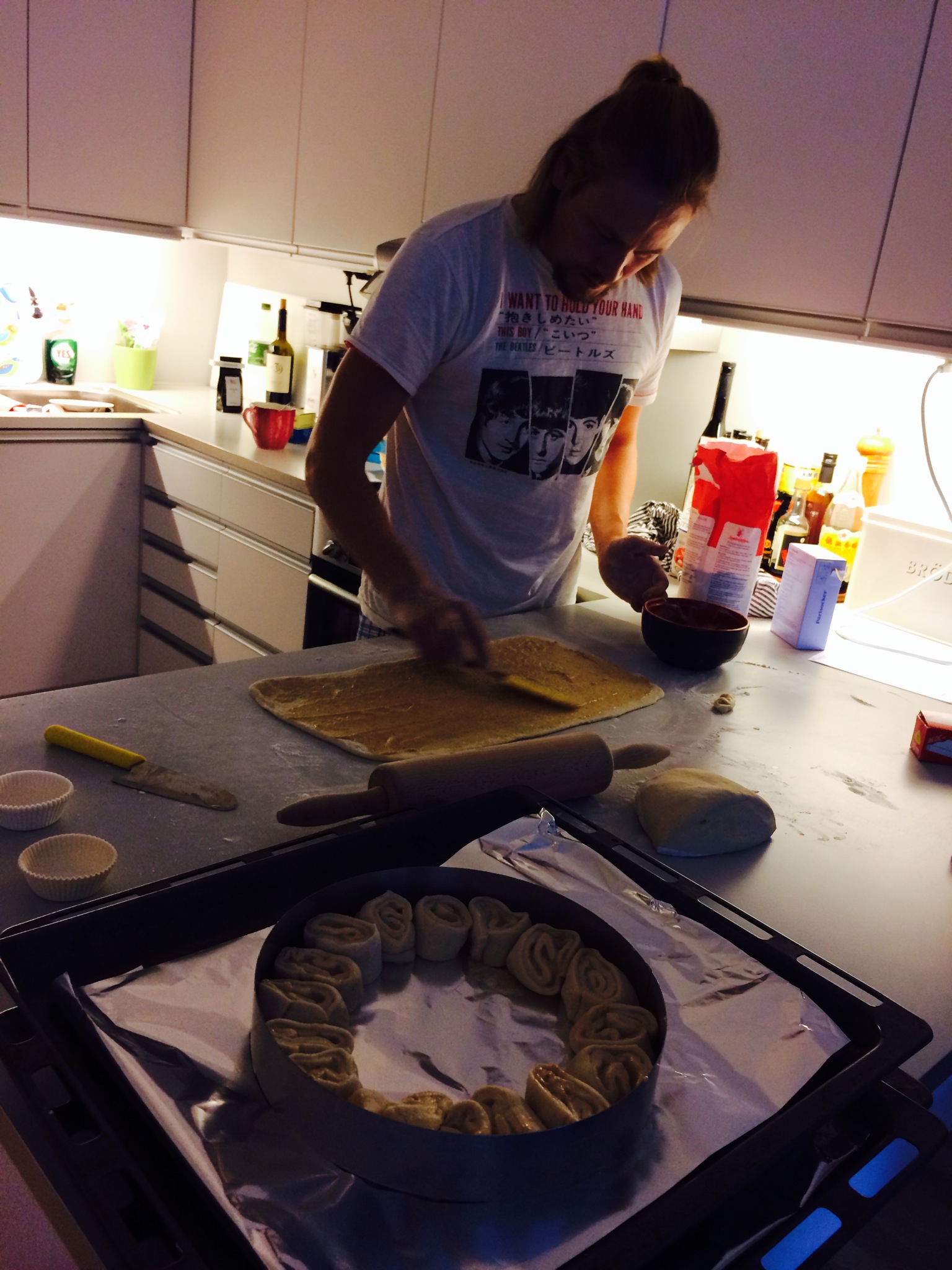 Igår var vi på middag hos några underbara människor och på grund av det har vi  inte direkt varit några underbara människor idag utan legat i soffan hela dagen och slumrat, ätit hämt-mat och försummat våra barn. Jo, vi har förstås glott i våra mobiler också. Eftersom de  svämmade över av kanelbullar var pappan tvungen att slita sig från soffan och äga ut alla genom att göra den mäktigaste kanelbulle-tårtan ever. Och: vanliga kanelbullar. #livetärentävling #vivann